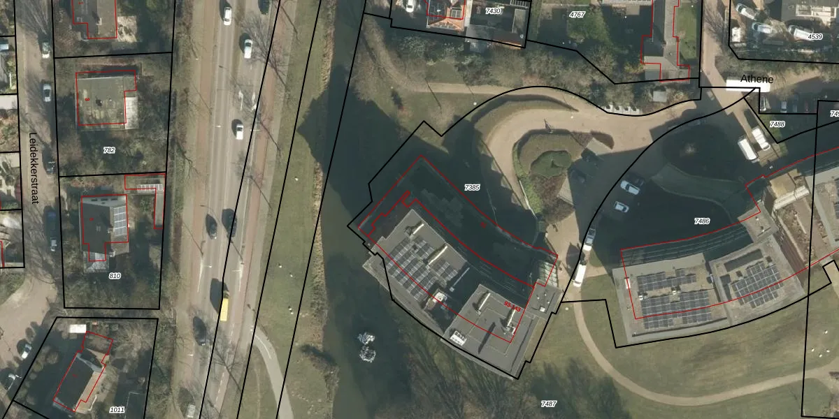 Het perceel waarop Athene 101 staat heeft een oppervlakte van 2985 m². Dit is een zeer groot perceel. De perceeloppervlakte wordt geregistreerd door het Kadaster. Gedetailleerde informatie over de maten van dit perceel kunt u vinden in het rapport Kadastrale kaart met maatvoering van Athene 101.