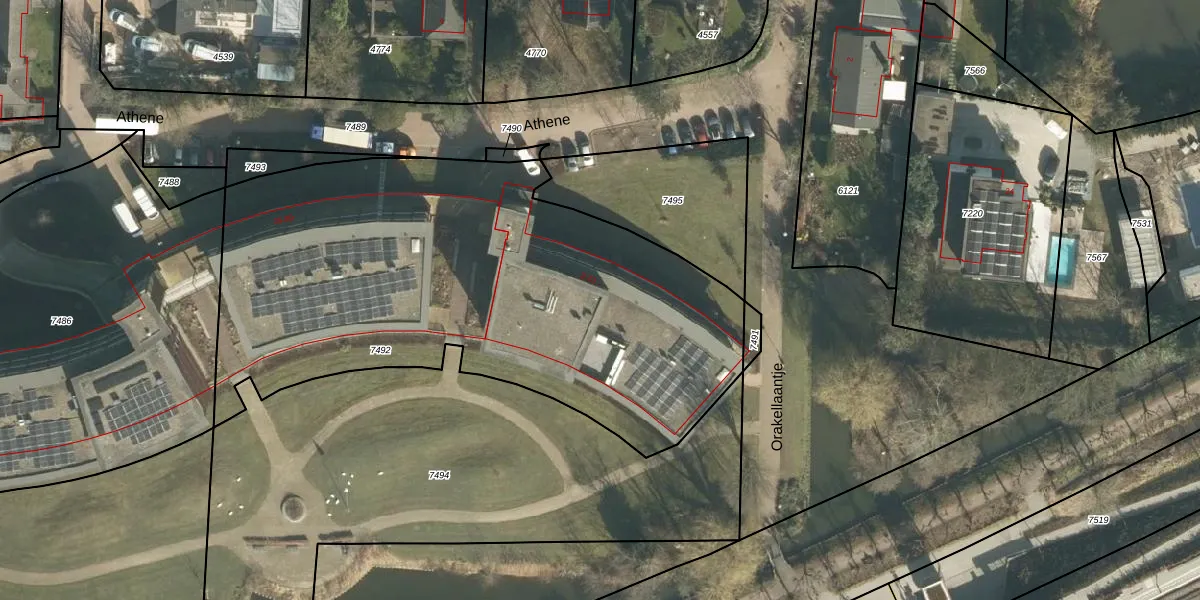 Het perceel waarop Athene 15 staat heeft een oppervlakte van 2930 m². Dit is een zeer groot perceel. De perceeloppervlakte wordt geregistreerd door het Kadaster. Gedetailleerde informatie over de maten van dit perceel kunt u vinden in het rapport Kadastrale kaart met maatvoering van Athene 15.