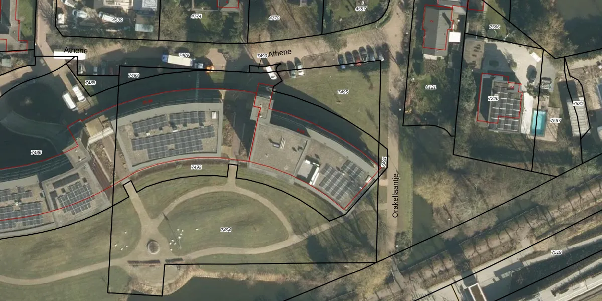 Het perceel waarop Athene 17 staat heeft een oppervlakte van 2930 m². Dit is een zeer groot perceel. De perceeloppervlakte wordt geregistreerd door het Kadaster. Gedetailleerde informatie over de maten van dit perceel kunt u vinden in het rapport Kadastrale kaart met maatvoering van Athene 17.