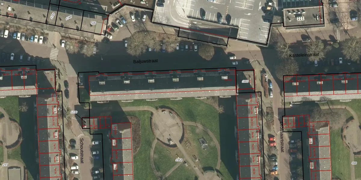 Het perceel waarop Baljuwstraat 17-c staat heeft een oppervlakte van 9090 m². Dit is een zeer groot perceel. De perceeloppervlakte wordt geregistreerd door het Kadaster. Gedetailleerde informatie over de maten van dit perceel kunt u vinden in het rapport Kadastrale kaart met maatvoering van Baljuwstraat 17-c.
