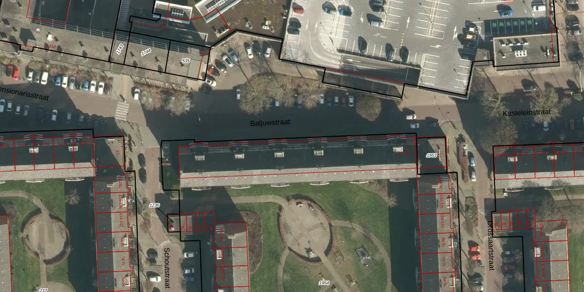 Het perceel waarop Baljuwstraat 23 staat heeft een oppervlakte van 9090 m². Dit is een zeer groot perceel. De perceeloppervlakte wordt geregistreerd door het Kadaster. Gedetailleerde informatie over de maten van dit perceel kunt u vinden in het rapport Kadastrale kaart met maatvoering van Baljuwstraat 23.