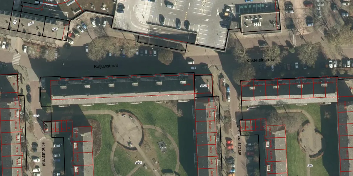 Het perceel waarop Baljuwstraat 3-a staat heeft een oppervlakte van 9090 m². Dit is een zeer groot perceel. De perceeloppervlakte wordt geregistreerd door het Kadaster. Gedetailleerde informatie over de maten van dit perceel kunt u vinden in het rapport Kadastrale kaart met maatvoering van Baljuwstraat 3-a.