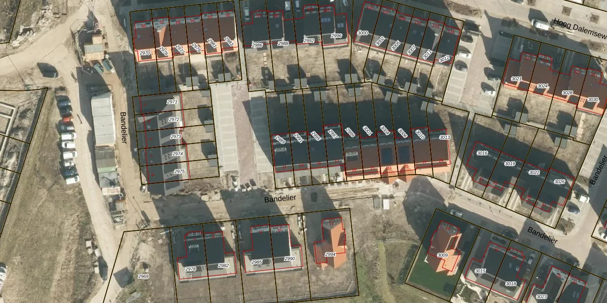 Het perceel waarop Bandelier 13 staat heeft een oppervlakte van 182 m². Dit is een middelgroot perceel. De perceeloppervlakte wordt geregistreerd door het Kadaster. Gedetailleerde informatie over de maten van dit perceel kunt u vinden in het rapport Kadastrale kaart met maatvoering van Bandelier 13.