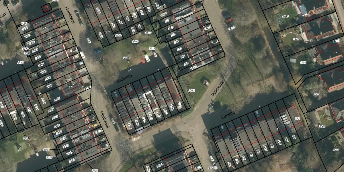 Het perceel waarop Barbette 16 staat heeft een oppervlakte van 129 m². Dit is een middelgroot perceel. De perceeloppervlakte wordt geregistreerd door het Kadaster. Gedetailleerde informatie over de maten van dit perceel kunt u vinden in het rapport Kadastrale kaart met maatvoering van Barbette 16.