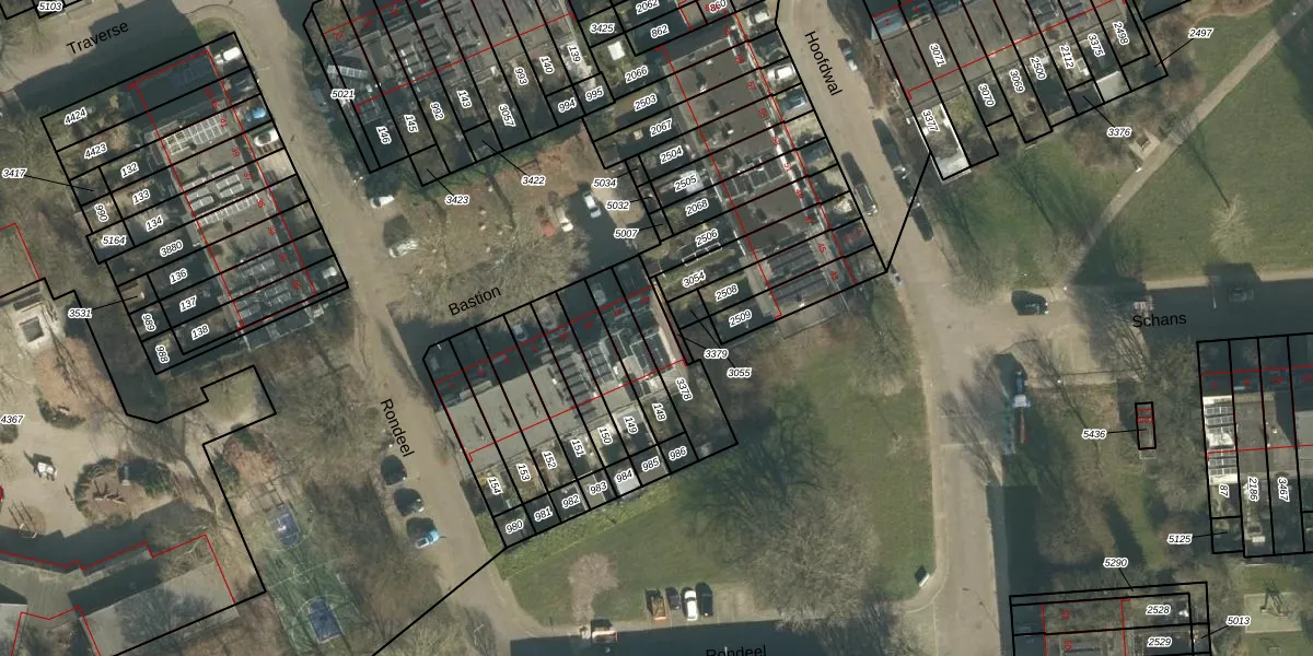 Het perceel waarop Bastion 16 staat heeft een oppervlakte van 181 m². Dit is een middelgroot perceel. De perceeloppervlakte wordt geregistreerd door het Kadaster. Gedetailleerde informatie over de maten van dit perceel kunt u vinden in het rapport Kadastrale kaart met maatvoering van Bastion 16.