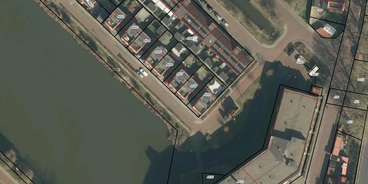 Binnenbaan 3 is gelegen op kadastraal perceel GRC00F4698. Deze kadastrale aanduiding is uniek en wordt gebruikt door het Kadaster om eigendomsrechten en andere zakelijke rechten vast te leggen. Het perceel maakt onderdeel uit van de kadastrale gemeente Gorinchem.