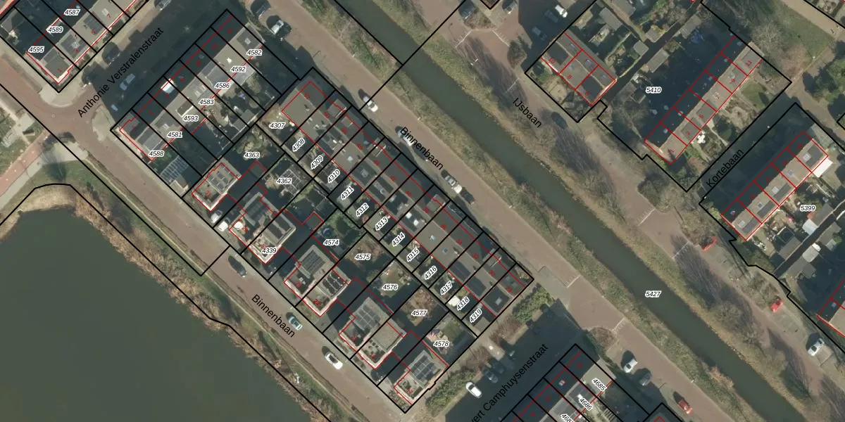 Gebruik de zoekbalk of klik op een perceel voor informatie over de adressen binnen dit perceel.