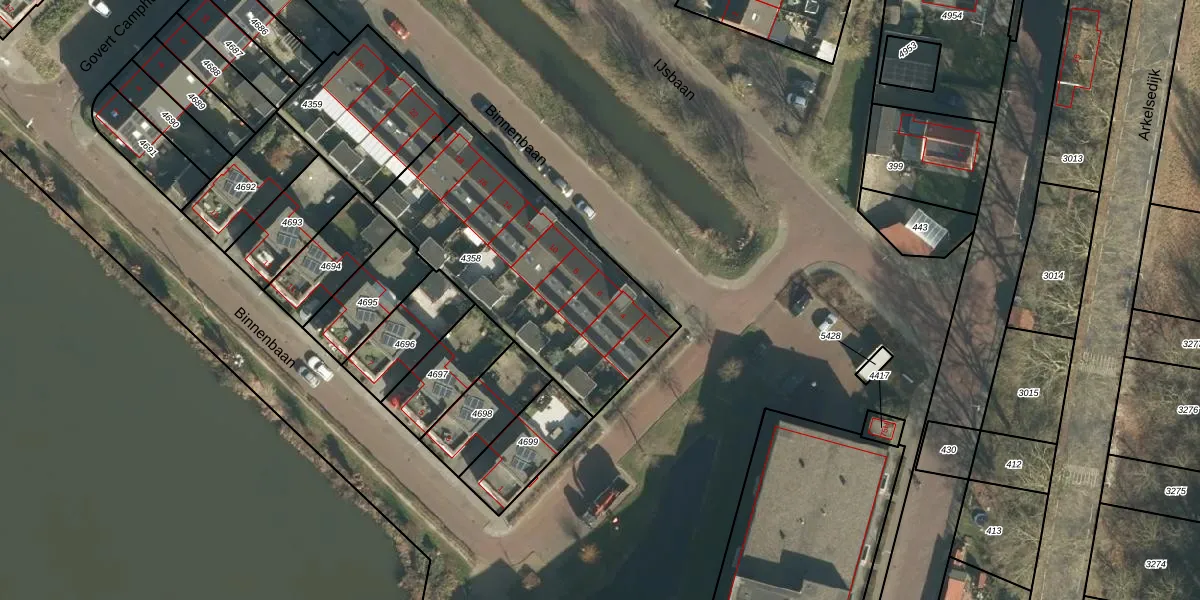 Binnenbaan 6 is gelegen op kadastraal perceel GRC00F4358. Deze kadastrale aanduiding is uniek en wordt gebruikt door het Kadaster om eigendomsrechten en andere zakelijke rechten vast te leggen. Het perceel maakt onderdeel uit van de kadastrale gemeente Gorinchem.