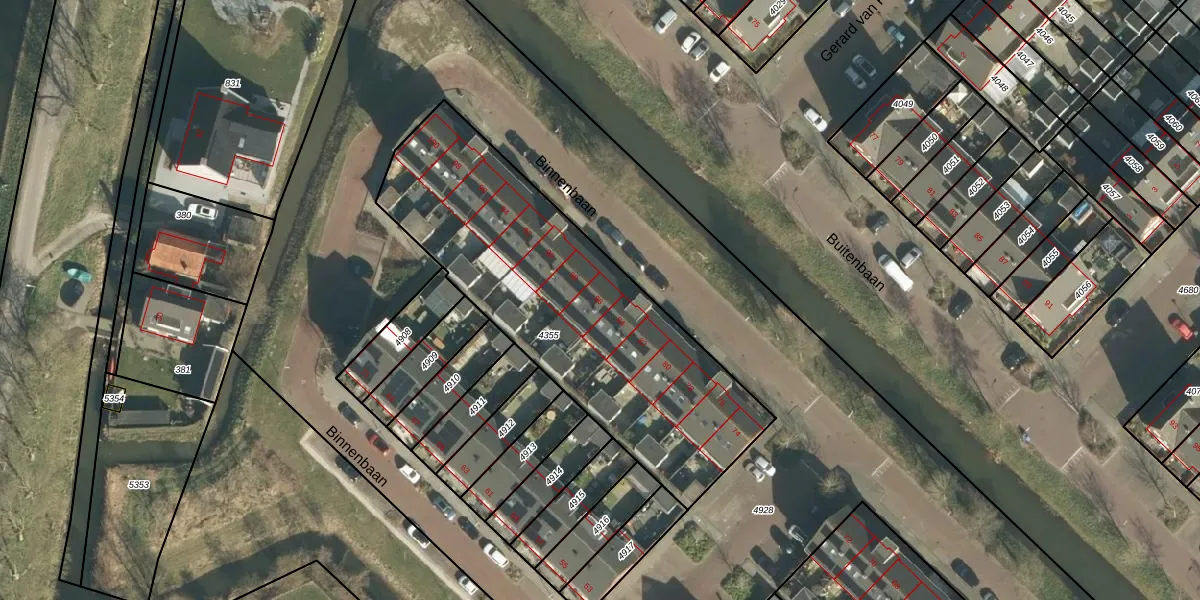 Binnenbaan 86 is gelegen op kadastraal perceel GRC00F4355. Deze kadastrale aanduiding is uniek en wordt gebruikt door het Kadaster om eigendomsrechten en andere zakelijke rechten vast te leggen. Het perceel maakt onderdeel uit van de kadastrale gemeente Gorinchem.