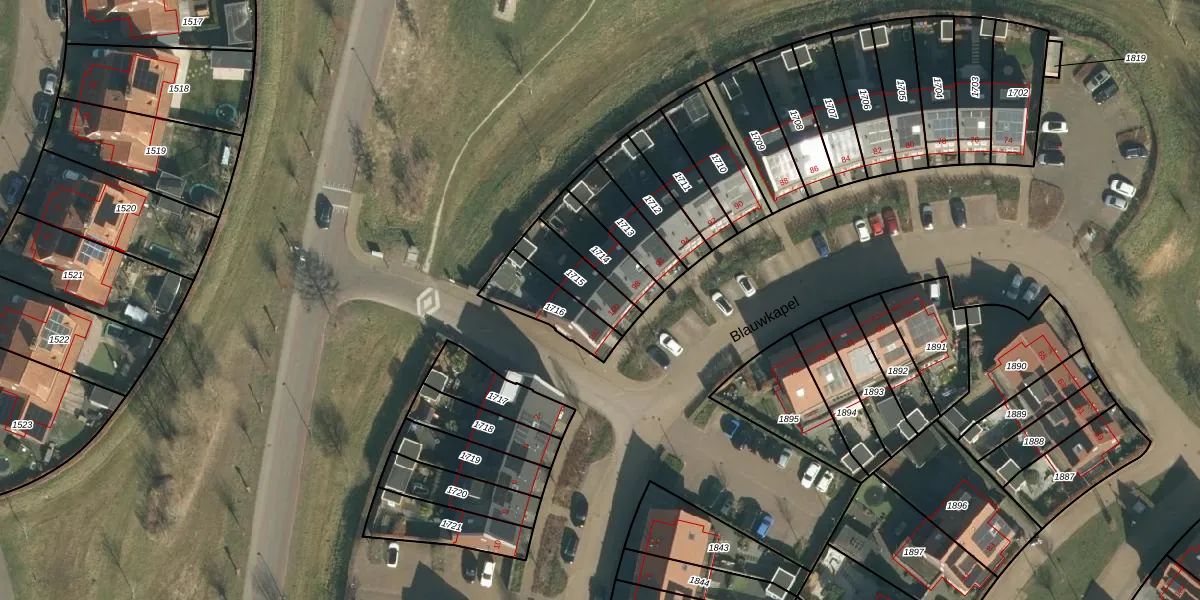 Gebruik de zoekbalk of klik op een perceel voor informatie over de adressen binnen dit perceel.