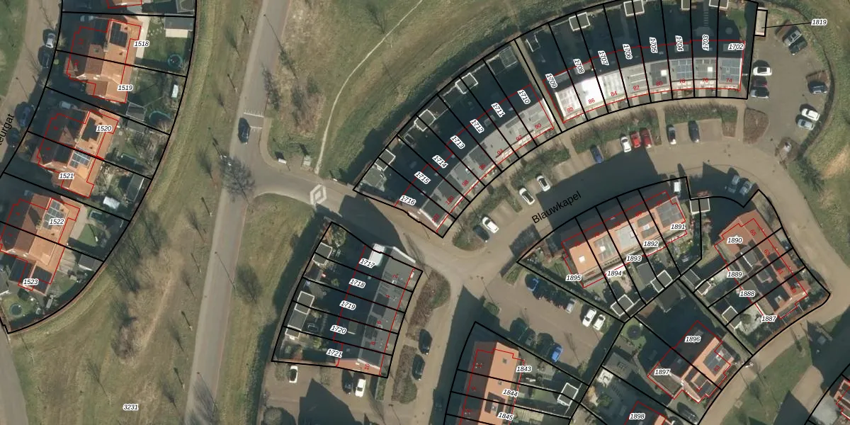 Het perceel waarop Blauwkapel 102 staat heeft een oppervlakte van 163 m². Dit is een middelgroot perceel. De perceeloppervlakte wordt geregistreerd door het Kadaster. Gedetailleerde informatie over de maten van dit perceel kunt u vinden in het rapport Kadastrale kaart met maatvoering van Blauwkapel 102.
