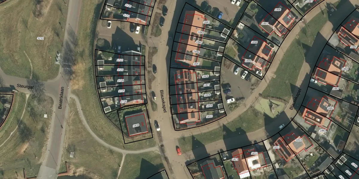 Gebruik de zoekbalk of klik op een perceel voor informatie over de adressen binnen dit perceel.
