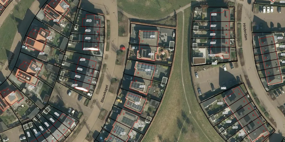 Gebruik de zoekbalk of klik op een perceel voor informatie over de adressen binnen dit perceel.