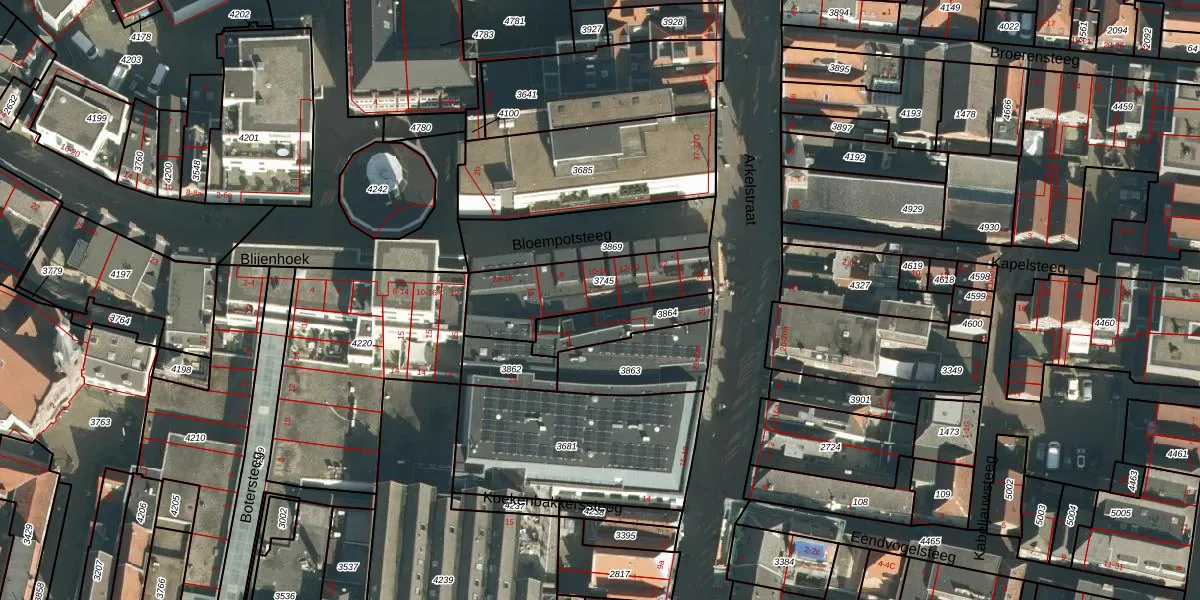 Bloempotsteeg 18 is gelegen op kadastraal perceel GRC00D3745. Deze kadastrale aanduiding is uniek en wordt gebruikt door het Kadaster om eigendomsrechten en andere zakelijke rechten vast te leggen. Het perceel maakt onderdeel uit van de kadastrale gemeente Gorinchem.