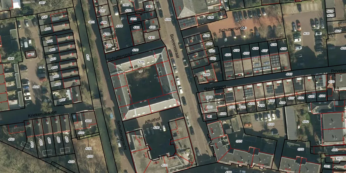 Het adres is gelegen op perceel 4289 in de sectie D en de kadastrale gemeente Gorinchem. De kadastrale aanduiding is aldus GRC00-D-4289. De gemiddelde perceelgrootte in Gorinchem is 1664,31 m². Dit perceel is kleiner: de perceeloppervlakte bedraagt 1245 m². Het grootste perceel in de kadastrale gemeente is 44,0 ha. Het kleinste perceel heeft een oppervlakte van 0 m². Op het perceel zijn 22 adressen aanwezig. In de Basisregistratie Kadaster (BRK) werden de grenzen van het perceel geregistreerd op 25-04-2001.