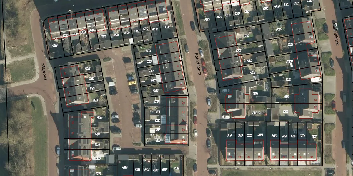 Gebruik de zoekbalk of klik op een perceel voor informatie over de adressen binnen dit perceel.