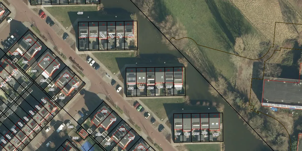 Buitenbaan 16 is gelegen op kadastraal perceel GRC00F4975. Deze kadastrale aanduiding is uniek en wordt gebruikt door het Kadaster om eigendomsrechten en andere zakelijke rechten vast te leggen. Het perceel maakt onderdeel uit van de kadastrale gemeente Gorinchem.