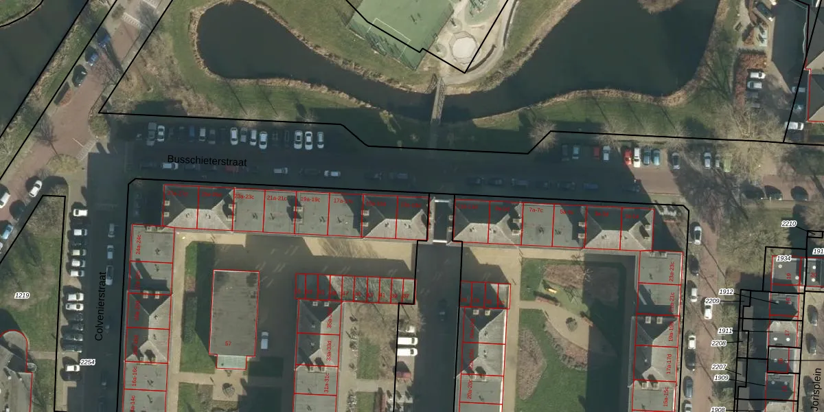 Het perceel waarop Busschieterstraat 13-a staat heeft een oppervlakte van 7925 m². Dit is een zeer groot perceel. De perceeloppervlakte wordt geregistreerd door het Kadaster. Gedetailleerde informatie over de maten van dit perceel kunt u vinden in het rapport Kadastrale kaart met maatvoering van Busschieterstraat 13-a.