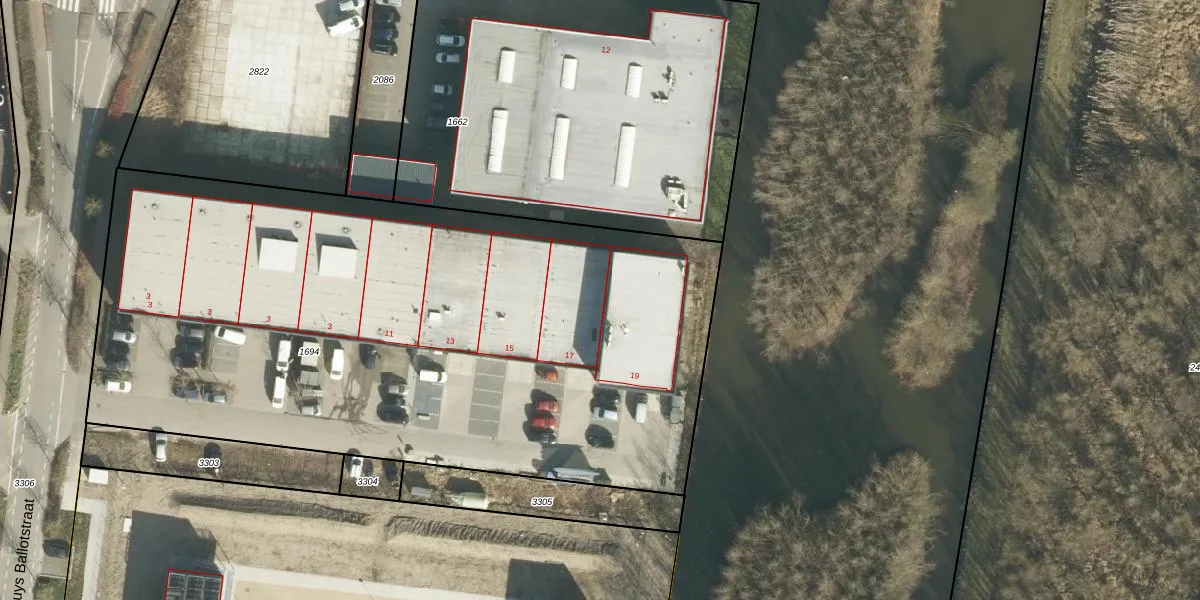 Het perceel waarop Buys Ballotstraat 17 staat heeft een oppervlakte van 4324 m². Dit is een zeer groot perceel. De perceeloppervlakte wordt geregistreerd door het Kadaster. Gedetailleerde informatie over de maten van dit perceel kunt u vinden in het rapport Kadastrale kaart met maatvoering van Buys Ballotstraat 17.