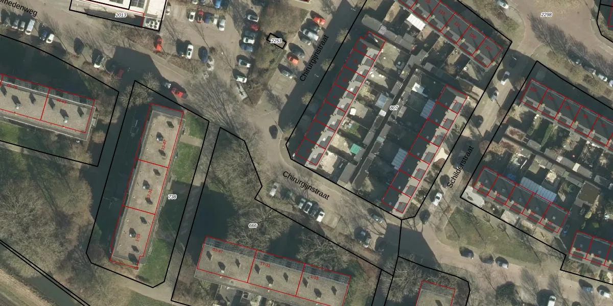Het perceel waarop Chirurgijnstraat 2 staat heeft een oppervlakte van 3431 m². Dit is een zeer groot perceel. De perceeloppervlakte wordt geregistreerd door het Kadaster. Gedetailleerde informatie over de maten van dit perceel kunt u vinden in het rapport Kadastrale kaart met maatvoering van Chirurgijnstraat 2.