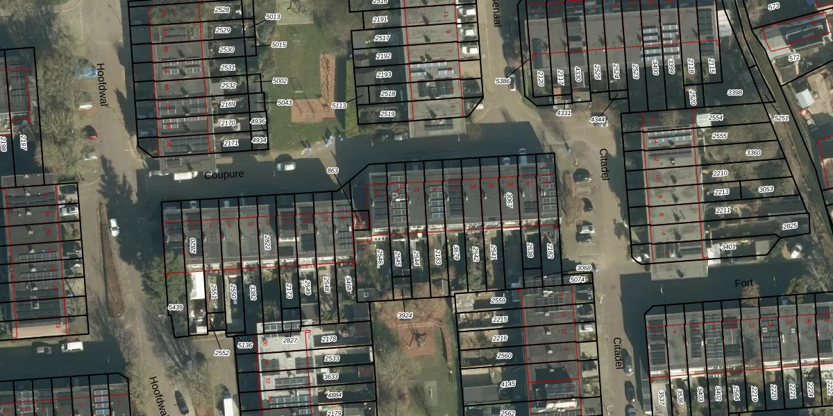 Gebruik de zoekbalk of klik op een perceel voor informatie over de adressen binnen dit perceel.