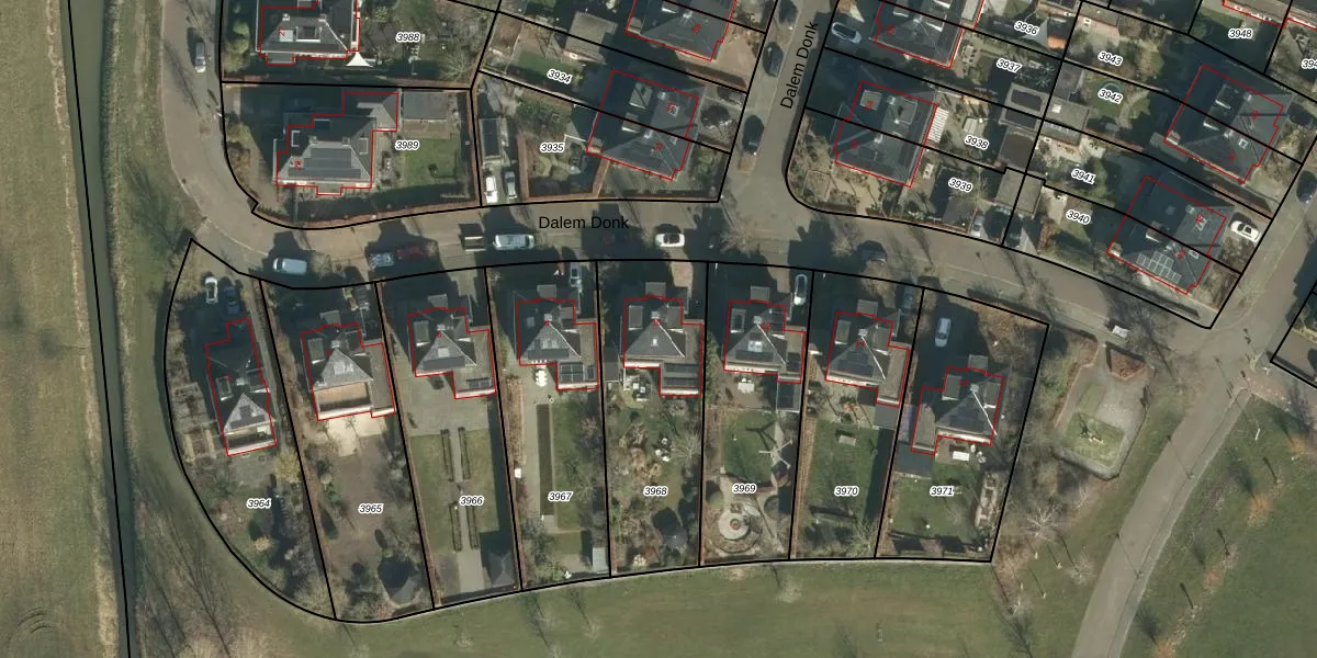 Het perceel waarop Dalem Donk 10 staat heeft een oppervlakte van 721 m². Dit is een groot perceel. De perceeloppervlakte wordt geregistreerd door het Kadaster. Gedetailleerde informatie over de maten van dit perceel kunt u vinden in het rapport Kadastrale kaart met maatvoering van Dalem Donk 10.