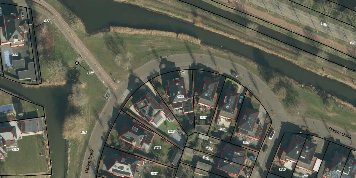 Dalem Donk 19 is gelegen op kadastraal perceel GRC00F3984. Deze kadastrale aanduiding is uniek en wordt gebruikt door het Kadaster om eigendomsrechten en andere zakelijke rechten vast te leggen. Het perceel maakt onderdeel uit van de kadastrale gemeente Gorinchem.