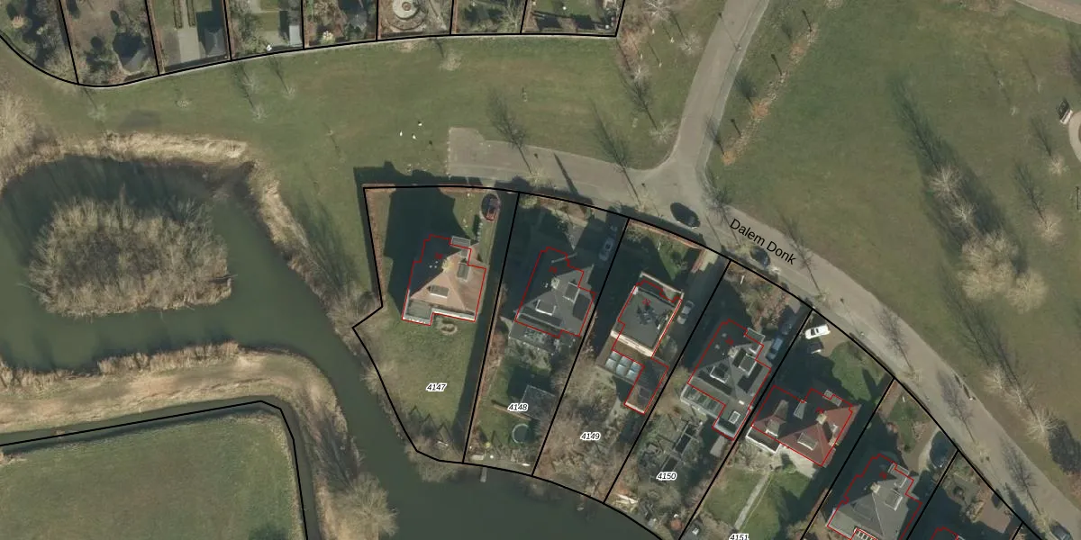 Het perceel waarop Dalem Donk 20 staat heeft een oppervlakte van 867 m². Dit is een groot perceel. De perceeloppervlakte wordt geregistreerd door het Kadaster. Gedetailleerde informatie over de maten van dit perceel kunt u vinden in het rapport Kadastrale kaart met maatvoering van Dalem Donk 20.