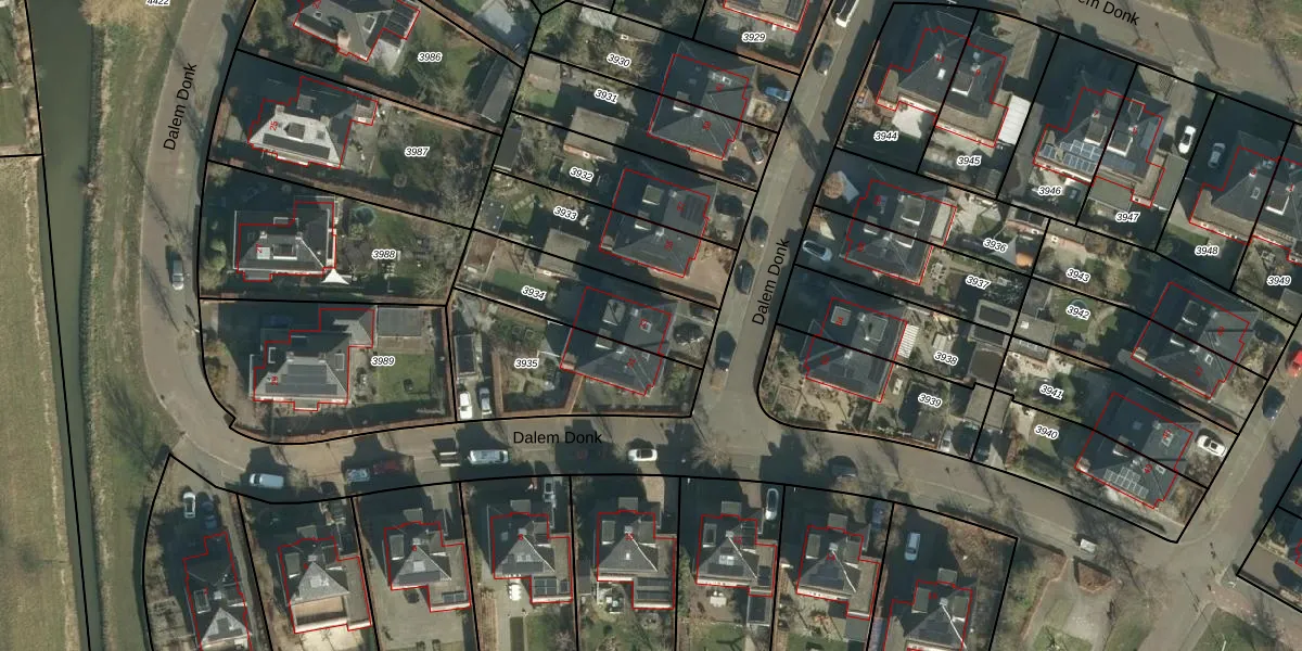 Dalem Donk 33 is gelegen op kadastraal perceel GRC00F3934. Deze kadastrale aanduiding is uniek en wordt gebruikt door het Kadaster om eigendomsrechten en andere zakelijke rechten vast te leggen. Het perceel maakt onderdeel uit van de kadastrale gemeente Gorinchem.