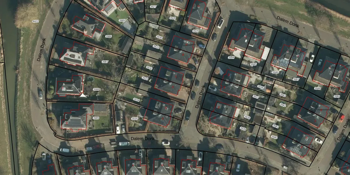 Het perceel waarop Dalem Donk 35 staat heeft een oppervlakte van 380 m². Dit is een groot perceel. De perceeloppervlakte wordt geregistreerd door het Kadaster. Gedetailleerde informatie over de maten van dit perceel kunt u vinden in het rapport Kadastrale kaart met maatvoering van Dalem Donk 35.
