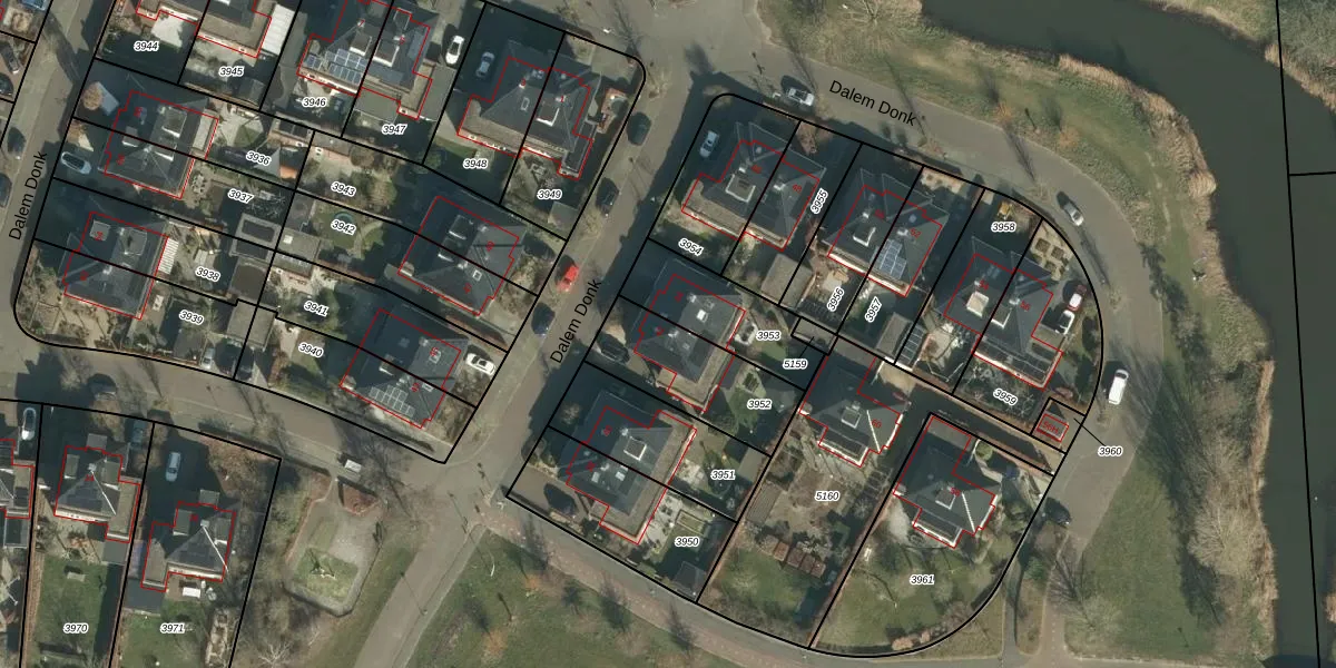 Het perceel waarop Dalem Donk 42 staat heeft een oppervlakte van 350 m². Dit is een groot perceel. De perceeloppervlakte wordt geregistreerd door het Kadaster. Gedetailleerde informatie over de maten van dit perceel kunt u vinden in het rapport Kadastrale kaart met maatvoering van Dalem Donk 42.