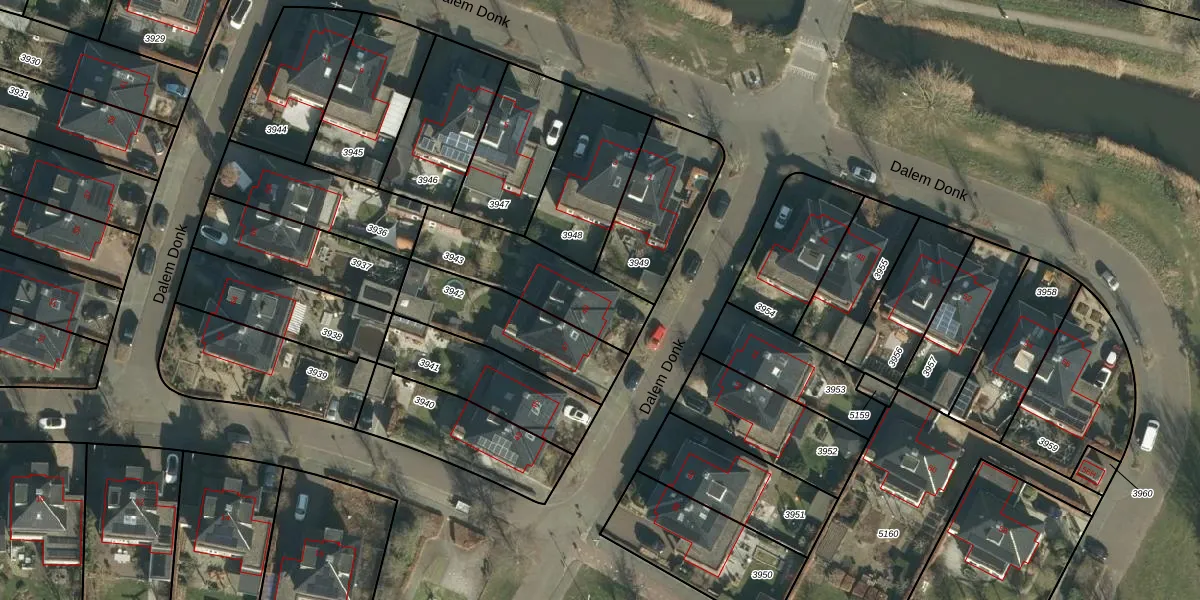 Het perceel waarop Dalem Donk 49 staat heeft een oppervlakte van 387 m². Dit is een groot perceel. De perceeloppervlakte wordt geregistreerd door het Kadaster. Gedetailleerde informatie over de maten van dit perceel kunt u vinden in het rapport Kadastrale kaart met maatvoering van Dalem Donk 49.