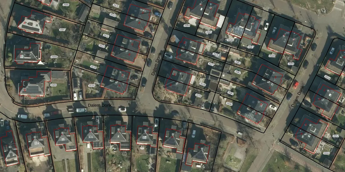 Het perceel waarop Dalem Donk 62 staat heeft een oppervlakte van 430 m². Dit is een groot perceel. De perceeloppervlakte wordt geregistreerd door het Kadaster. Gedetailleerde informatie over de maten van dit perceel kunt u vinden in het rapport Kadastrale kaart met maatvoering van Dalem Donk 62.
