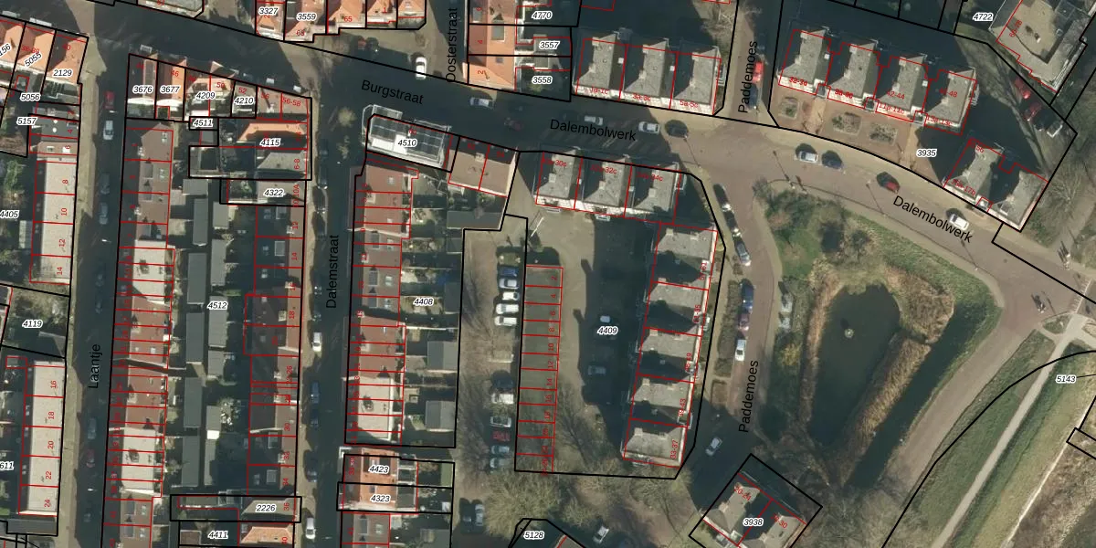 Het perceel waarop Dalembolwerk 2 staat heeft een oppervlakte van 1955 m². Dit is een zeer groot perceel. De perceeloppervlakte wordt geregistreerd door het Kadaster. Gedetailleerde informatie over de maten van dit perceel kunt u vinden in het rapport Kadastrale kaart met maatvoering van Dalembolwerk 2.