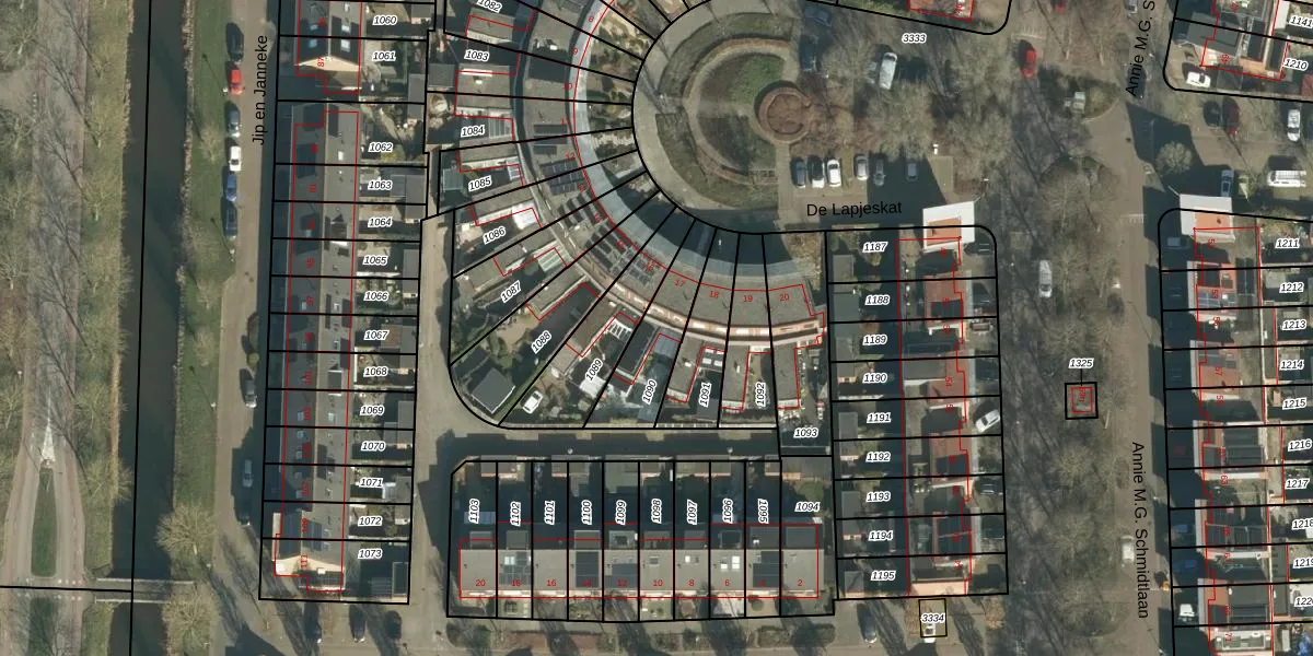 De Lapjeskat 17 is gelegen op kadastraal perceel GRC00P1090. Deze kadastrale aanduiding is uniek en wordt gebruikt door het Kadaster om eigendomsrechten en andere zakelijke rechten vast te leggen. Het perceel maakt onderdeel uit van de kadastrale gemeente Gorinchem.