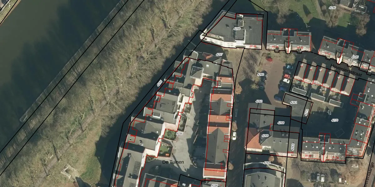 De Tuinen 13 is gelegen op kadastraal perceel GRC00D4335. Deze kadastrale aanduiding is uniek en wordt gebruikt door het Kadaster om eigendomsrechten en andere zakelijke rechten vast te leggen. Het perceel maakt onderdeel uit van de kadastrale gemeente Gorinchem.
