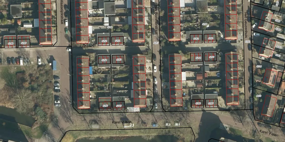 Dirk Bommerstraat 9 is gelegen op kadastraal perceel GRC00A5248. Deze kadastrale aanduiding is uniek en wordt gebruikt door het Kadaster om eigendomsrechten en andere zakelijke rechten vast te leggen. Het perceel maakt onderdeel uit van de kadastrale gemeente Gorinchem.