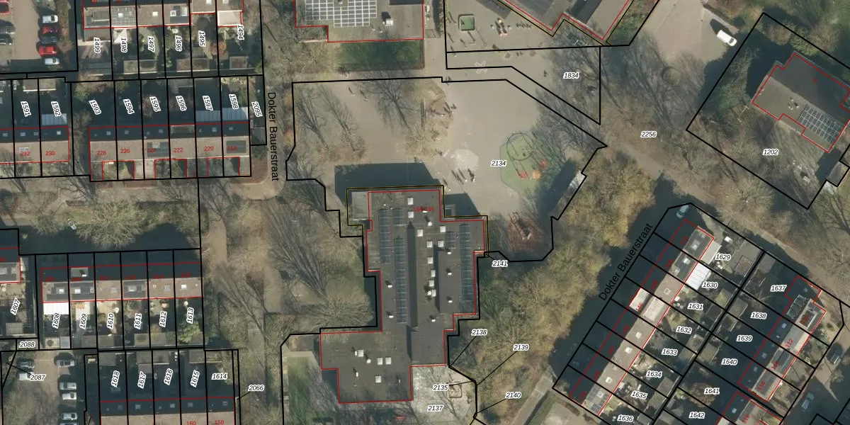Het perceel waarop Dokter Bauerstraat 154 staat heeft een oppervlakte van 1921 m². Dit is een zeer groot perceel. De perceeloppervlakte wordt geregistreerd door het Kadaster. Gedetailleerde informatie over de maten van dit perceel kunt u vinden in het rapport Kadastrale kaart met maatvoering van Dokter Bauerstraat 154.