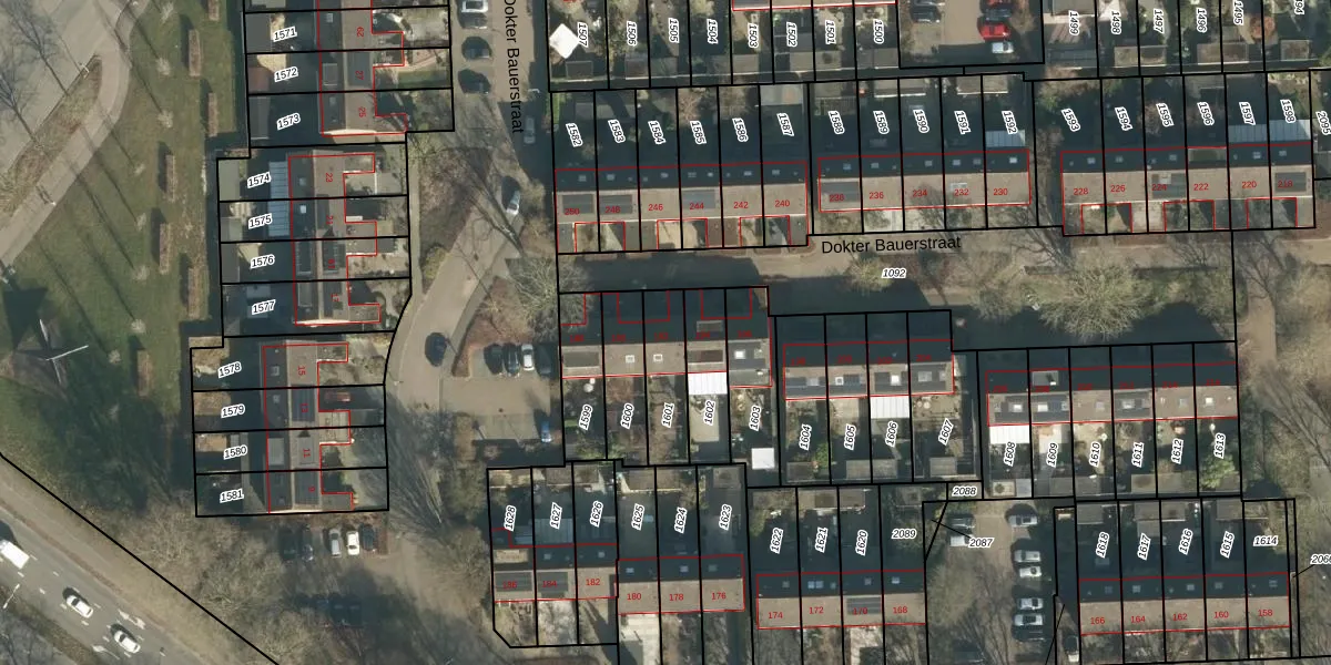 Dokter Bauerstraat 192 is gelegen op kadastraal perceel GRC00E1601. Deze kadastrale aanduiding is uniek en wordt gebruikt door het Kadaster om eigendomsrechten en andere zakelijke rechten vast te leggen. Het perceel maakt onderdeel uit van de kadastrale gemeente Gorinchem.