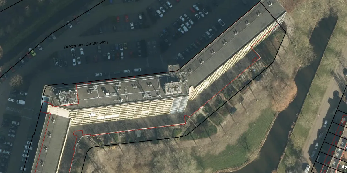 Dokter van Stratenweg 252 is gelegen op kadastraal perceel GRC00E1216. Deze kadastrale aanduiding is uniek en wordt gebruikt door het Kadaster om eigendomsrechten en andere zakelijke rechten vast te leggen. Het perceel maakt onderdeel uit van de kadastrale gemeente Gorinchem.