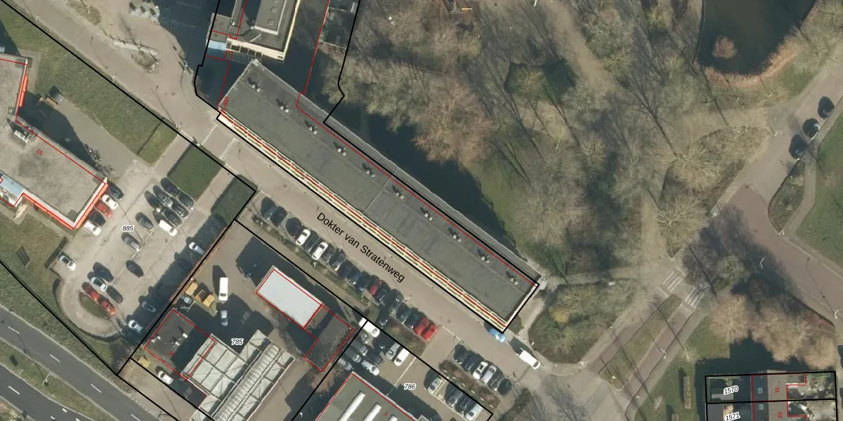Dokter van Stratenweg 310 is gelegen op kadastraal perceel GRC00E1216. Deze kadastrale aanduiding is uniek en wordt gebruikt door het Kadaster om eigendomsrechten en andere zakelijke rechten vast te leggen. Het perceel maakt onderdeel uit van de kadastrale gemeente Gorinchem.