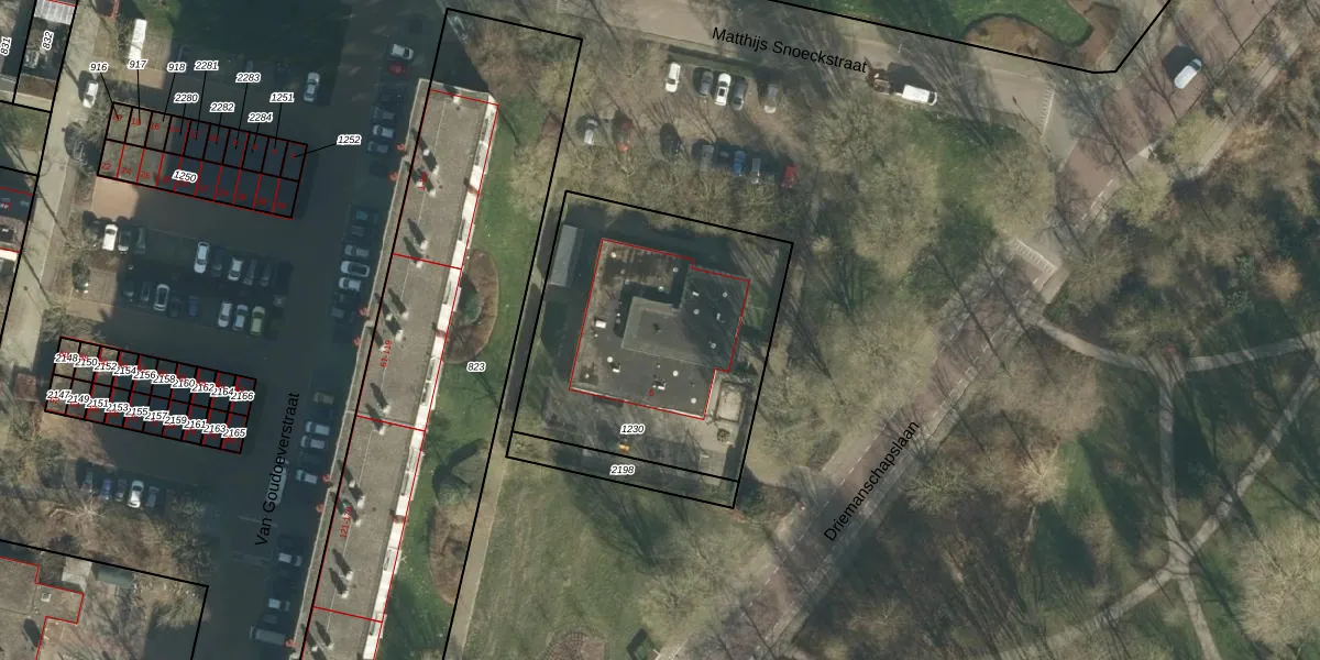 Gebruik de zoekbalk of klik op een perceel voor informatie over de adressen binnen dit perceel.
