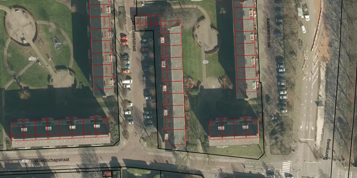 Het perceel waarop Drossaartstraat 10-c staat heeft een oppervlakte van 6211 m². Dit is een zeer groot perceel. De perceeloppervlakte wordt geregistreerd door het Kadaster. Gedetailleerde informatie over de maten van dit perceel kunt u vinden in het rapport Kadastrale kaart met maatvoering van Drossaartstraat 10-c.