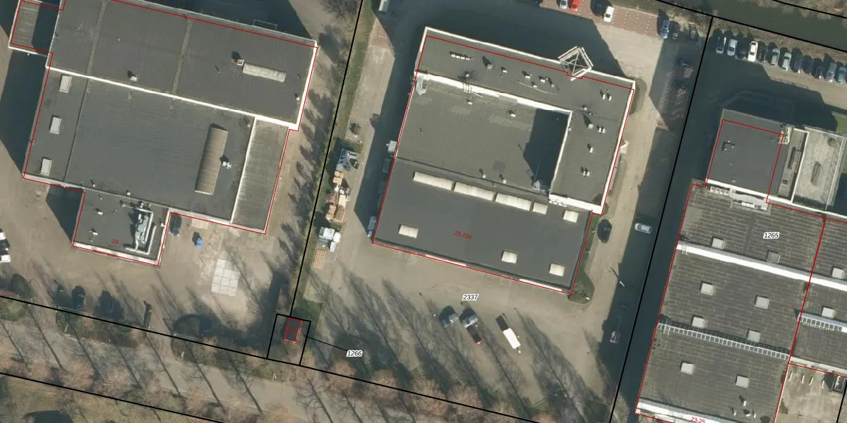 Het perceel waarop Edisonweg 21-a staat heeft een oppervlakte van 8345 m². Dit is een zeer groot perceel. De perceeloppervlakte wordt geregistreerd door het Kadaster. Gedetailleerde informatie over de maten van dit perceel kunt u vinden in het rapport Kadastrale kaart met maatvoering van Edisonweg 21-a.