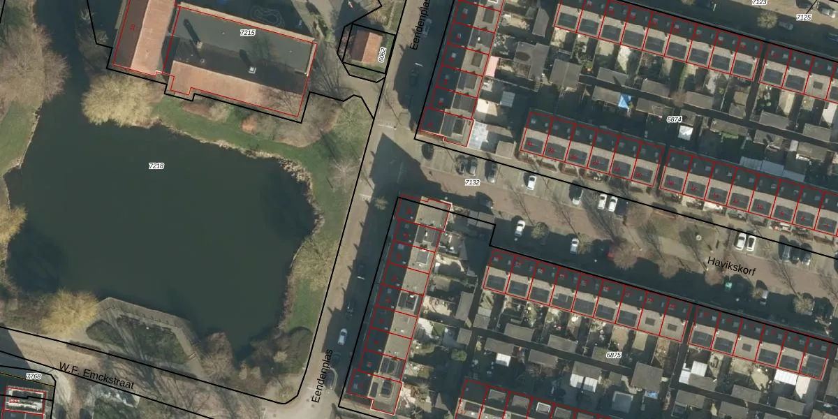 Het perceel waarop Eendenplas 18 staat heeft een oppervlakte van 6555 m². Dit is een zeer groot perceel. De perceeloppervlakte wordt geregistreerd door het Kadaster. Gedetailleerde informatie over de maten van dit perceel kunt u vinden in het rapport Kadastrale kaart met maatvoering van Eendenplas 18.
