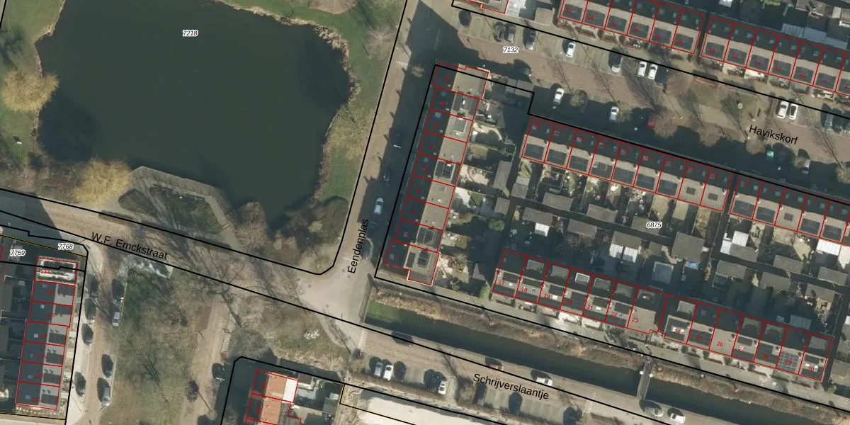 Het perceel waarop Eendenplas 6 staat heeft een oppervlakte van 6555 m². Dit is een zeer groot perceel. De perceeloppervlakte wordt geregistreerd door het Kadaster. Gedetailleerde informatie over de maten van dit perceel kunt u vinden in het rapport Kadastrale kaart met maatvoering van Eendenplas 6.