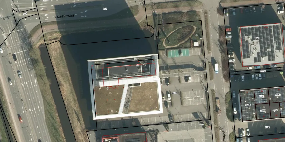Het perceel waarop Einsteinstraat 2 staat heeft een oppervlakte van 4470 m². Dit is een zeer groot perceel. De perceeloppervlakte wordt geregistreerd door het Kadaster. Gedetailleerde informatie over de maten van dit perceel kunt u vinden in het rapport Kadastrale kaart met maatvoering van Einsteinstraat 2.