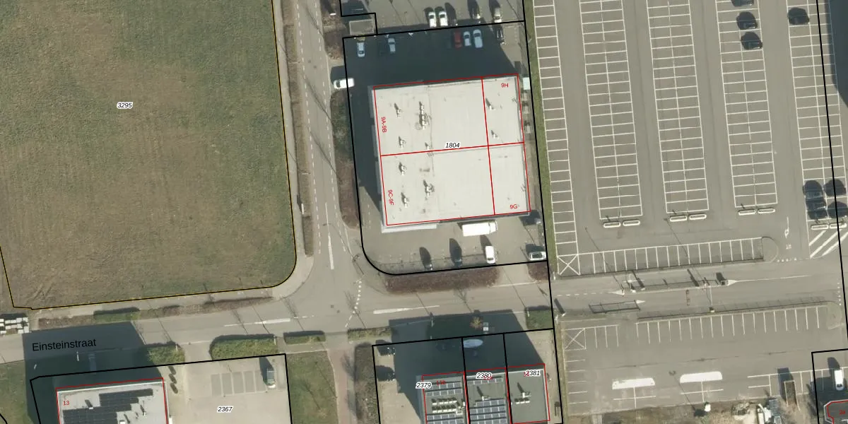 Einsteinstraat 9-D is gelegen op kadastraal perceel GRC00P1804. Deze kadastrale aanduiding is uniek en wordt gebruikt door het Kadaster om eigendomsrechten en andere zakelijke rechten vast te leggen. Het perceel maakt onderdeel uit van de kadastrale gemeente Gorinchem.