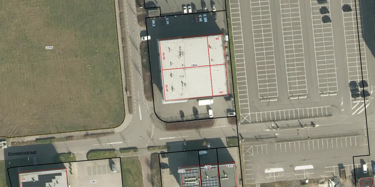 Einsteinstraat 9-E is gelegen op kadastraal perceel GRC00P1804. Deze kadastrale aanduiding is uniek en wordt gebruikt door het Kadaster om eigendomsrechten en andere zakelijke rechten vast te leggen. Het perceel maakt onderdeel uit van de kadastrale gemeente Gorinchem.