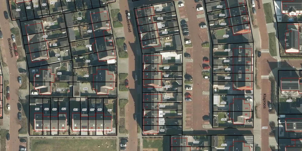 Gebruik de zoekbalk of klik op een perceel voor informatie over de adressen binnen dit perceel.